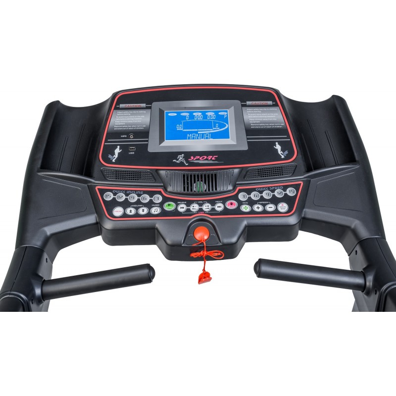 - Управление с поручней: Есть, регулировка угла наклона и скорости полотна