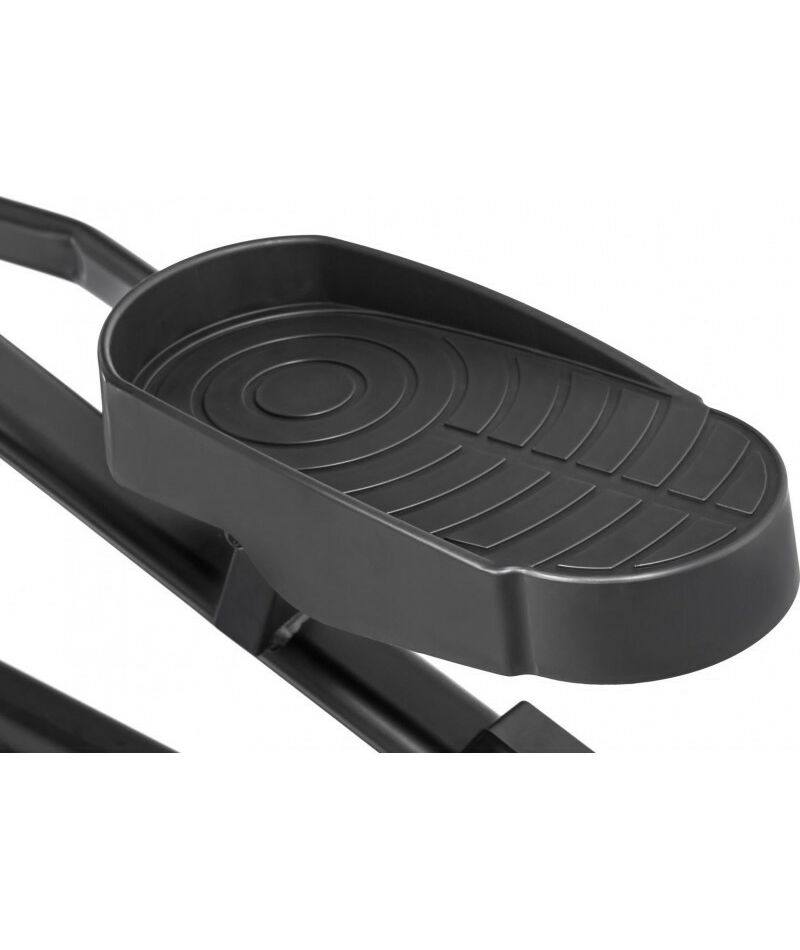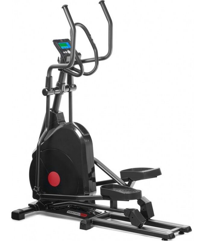По своим техническим параметрам тренажер направлен на максимальную эффективность в тренировках с отдельным акцентом на реабилитацию – здесь есть Ватт-программа, 4 пульсозависимые программы и телеметрический ремень для точного определения частоты пульса в комплекте. В своей основе тренажер построен на новейшей биовекторной платформе bioTECH™ Vertical. Приводная система расположена спереди в вертикальном положении – на текущий момент, это самая передовая компоновка в эллиптических тренажерах, обеспечивающая максимум эффективности, комфорта и безопасности. Помимо отличной биомеханики, такая конструкция позволяют существенно сэкономить пространство – в рабочем состоянии (с учетом вылета педалей) эллипсоид занимает всего 150 см в длину. Длина шага для Frontech FRA составляет 46 см – этого вполне достаточно для большинства пользователей.