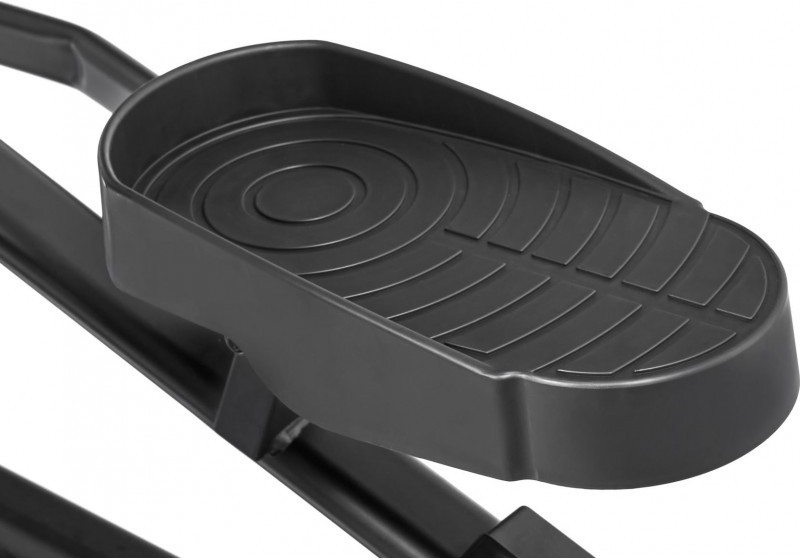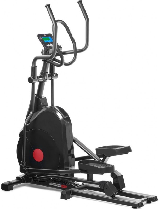 По своим техническим параметрам тренажер направлен на максимальную эффективность в тренировках с отдельным акцентом на реабилитацию – здесь есть Ватт-программа, 4 пульсозависимые программы и телеметрический ремень для точного определения частоты пульса в комплекте. В своей основе тренажер построен на новейшей биовекторной платформе bioTECH™ Vertical. Приводная система расположена спереди в вертикальном положении – на текущий момент, это самая передовая компоновка в эллиптических тренажерах, обеспечивающая максимум эффективности, комфорта и безопасности. Помимо отличной биомеханики, такая конструкция позволяют существенно сэкономить пространство – в рабочем состоянии (с учетом вылета педалей) эллипсоид занимает всего 150 см в длину. Длина шага для Frontech FRA составляет 46 см – этого вполне достаточно для большинства пользователей.