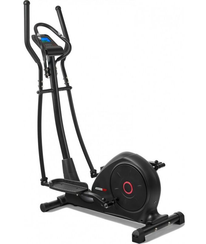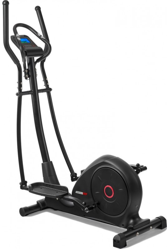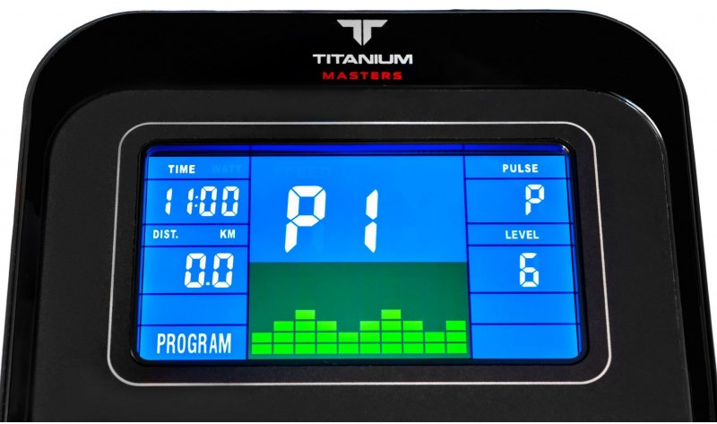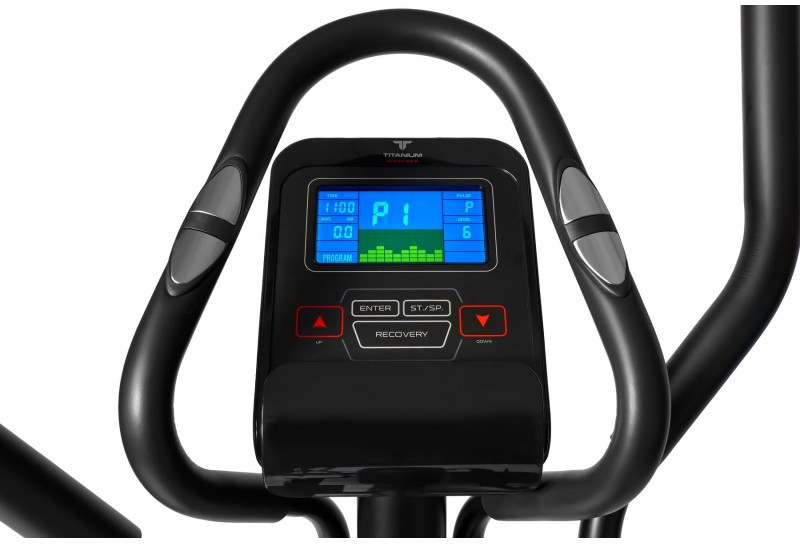 Два типа поручней позволяют комфортно тренироваться людям любого роста и комплекции. Рама эллипсоида, выполненная из усиленного стального профиля, в состоянии выдержать пользователя весом до 130 кг. Тренировочный компьютер представлен цветным LCD-дисплеем диагональю 5 дюймов (12,7 см). На экран выводятся все основные параметры тренировки - время, дистанция, скорость, калории, обороты в мин., уровни нагрузки, пульс и программные профили. Измерение пульса происходит путем удержания ладоней на сенсорных датчиках пульса, расположенных на поручнях.