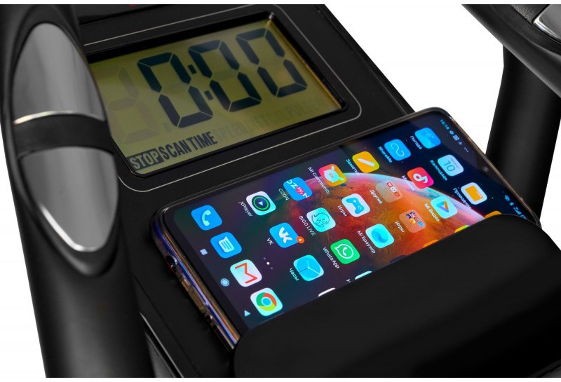 - Показания консоли: время, дистанция, скорость, калории, обороты в мин., пульс
