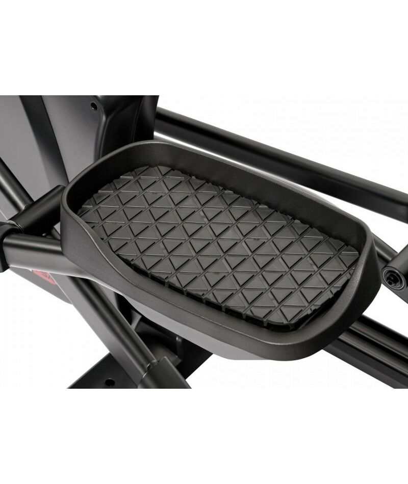 Сочетание вертикально расположенного маховика, выверенной биомеханики, длины шага в 52 см и ультрамалого Q-фактора 5 см (E.S.Q.F.) обеспечивает наиболее мягкое, комфортное и безопасное педалирование. Здесь установлен один из самых тяжелых маховиков номинальным весом 14 кг (инерционный вес 30,8 кг) – благодаря этому создается великолепная инерционность и полное отсутствие провалов вне зависимости от того, на каких уровнях нагрузки занимается пользователь. Также равномерную прижимную силу обеспечивают 7 магнитов увеличенного размера.