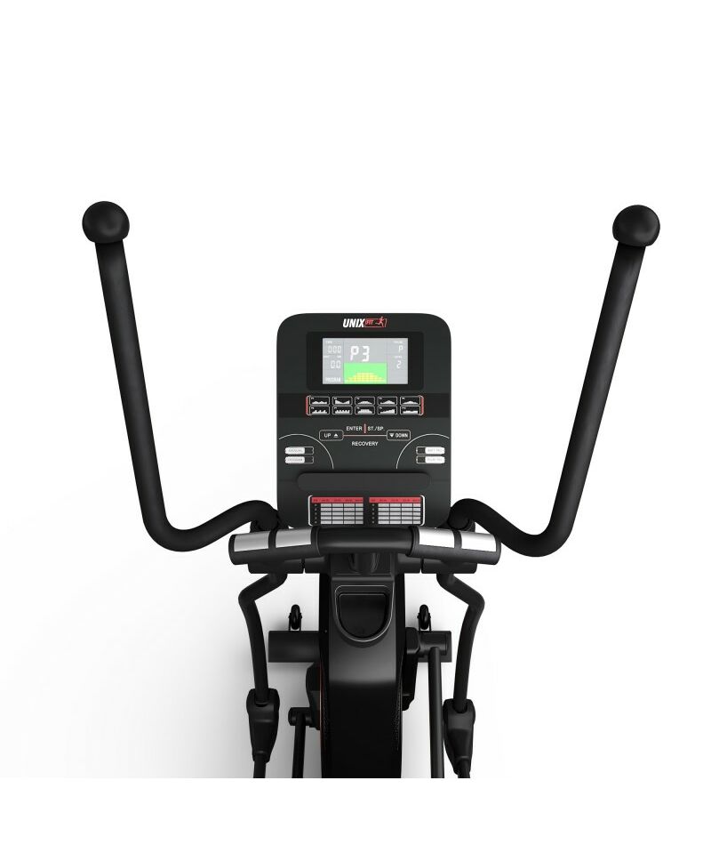 - Датчики пульса на поручнях. В тренажере предусмотрено два вида поручней — подвижный поручень предназначен для более интенсивной проработки мышц плечевого пояса, а фиксированный 22,5 см для менее интенсивных тренировок. На неподвижных поручнях эллипсойда расположены датчики пульса для измерения частоты сердцебиения.