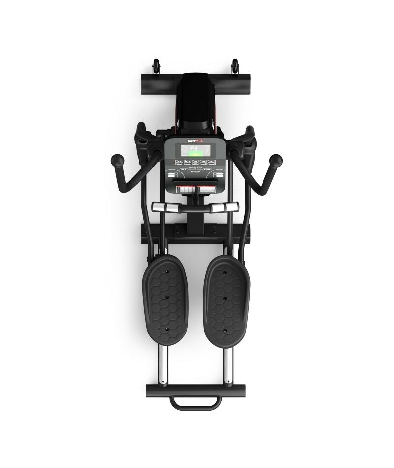 - Переднеприводная система. В эллиптическом тренажере ELSL480E маховик расположен спереди. Такая конструкция позволяет увеличить максимальную длину шага и обеспечивает естественное перемещение педалей. Благодаря высоко расположенным поручням, устройство подойдет пользователям любого роста.
