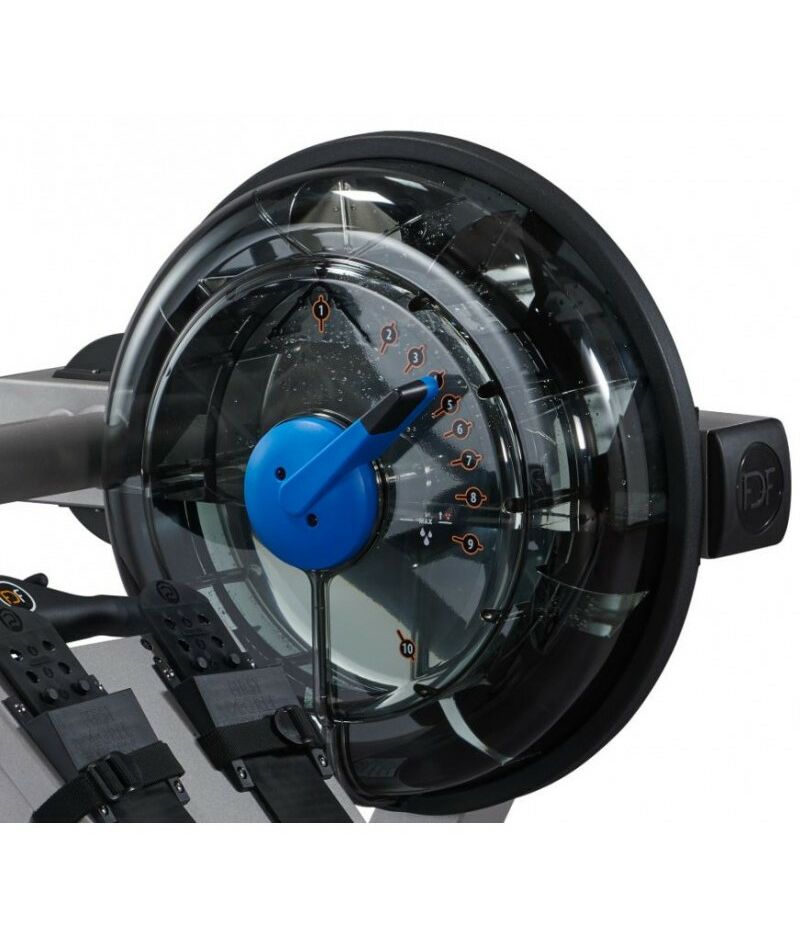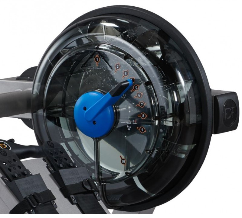 - В отличие от других тренажеров для гребли с водной нагрузкой, в гребном тренажере Vortex VX-3 добавлена возможность дополнительной регулировки сопротивления. Вы сможете выбрать любую уровень нагрузки из 20 возможных - от начального до олимпийского. Для создания сопротивления воды используются 9 лопастей из нержавеющей стали. Это обеспечивает натуральный зацеп и позволяет избежать "мертвых зон" во время гребли - сопротивление возникает сразу в начале гребка. Бак в данной моделе расположен вертикально и лопастям приходится перемещать воду вверх, что позволяет создать максимально возможную нагрузку, необходимую для подготовки профессиональных спортсменов. Мы запатентовали систему прямого привода Direct Drive без промежуточных цепей и соединений, ремень напрямую соединен через шкиф с лопастями, которые создают сопротивление. В результате, происходит прямой контакт с водой и вы получаете натуральное ощущение от гребли на воде. Теперь вы сможете ощутить самое естественное сопротивление воды. Также, мы смогли создать уникальную конструкцию шкива, который напрямую соединяет ремень привода и лопасти, создающие сопротивление. Благодаря специальному механизму, ремень плавно и без рывков возвращается в исходное положение после последней фазы гребка