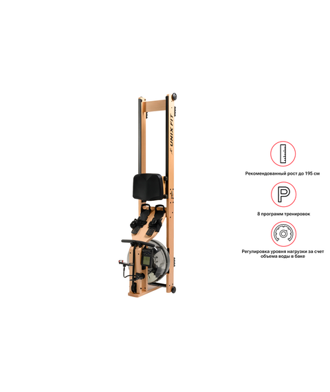 Гребной тренажер Wood Rower наиболее точно имитирует реальную греблю на воде. Водная инерционная система нагружения обеспечивает плавное движение и сопротивление без рывков. Нагрузка регулируется уровнем воды в баке. Общий объем бака составляет 25 литров, для занятий потребуется залить от 10 до 12 литров. Рекомендуется дистилированная вода.