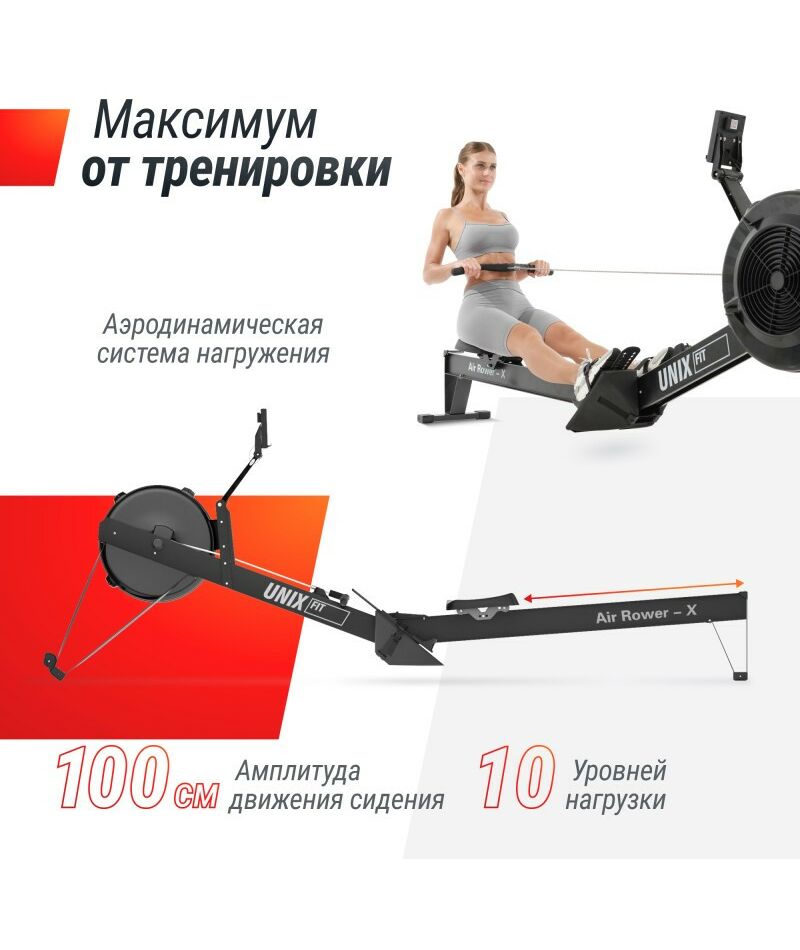 Гребной тренажер UNIXFIT Air Rower-X Black