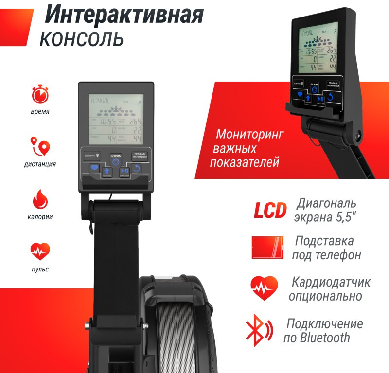 Спортивный тренажер для гребли легко складывается и занимает мало места, что делает его идеальным для домашнего использования. Он оснащен многофункциональным LCD дисплеем диагональю 5,5” для удобства контроля тренировки и отображает время, дистанцию, сожженные калории и пульс. Тренажер легко подключить к одному из приложений FITSHOW, KINOMAP, ZWIFT, SPAX, FITLOG и получить максимальную пользу от тренировок. Предусмотрен Bluetooth-модуль для подключения вашего кардиодатчика к компьютеру тренажера. Кардиодатчик приобретается отдельно. Тренируйтесь с удовольствием и с UNIX Fit!