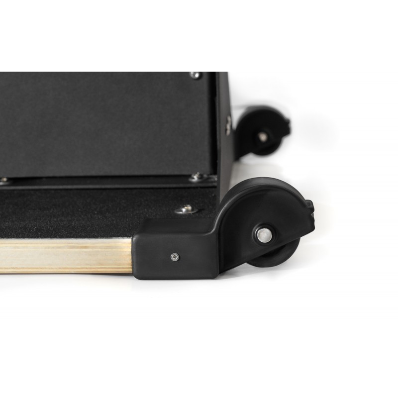 - Удобство транспортировки – встроенные ролики позволяют легко перемещать тренажер.
