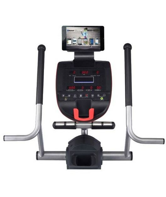 - Для того что бы тренировка была не только эффективной, но и приятной, консоль тренажера оборудована подставкой под смартфон или планшет, есть USB – порт для зарядки цифровых устройств и возможность подключения mp3-проигрывателя. А также современный матричный дисплей отображает такие данные как: дистанция, скорость, время калории, уровень нагрузки и пульс.