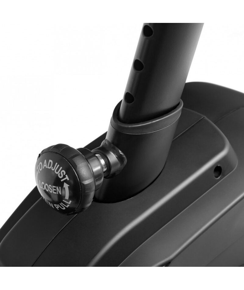 Руль регулируется на 360 градусов, поэтому с подбором положения под себя точно не возникнет проблем. Сидение большое и удобное, а за счет двух больших гелиевых подушек еще и мягкое. Педали с регулируемыми ремнями настраиваются практически под любой размер стопы. Тренажер прост в перемещении за счёт транспортировочных роликов, а компенсаторы неровностей пола позволяют установить его на неровной поверхности.