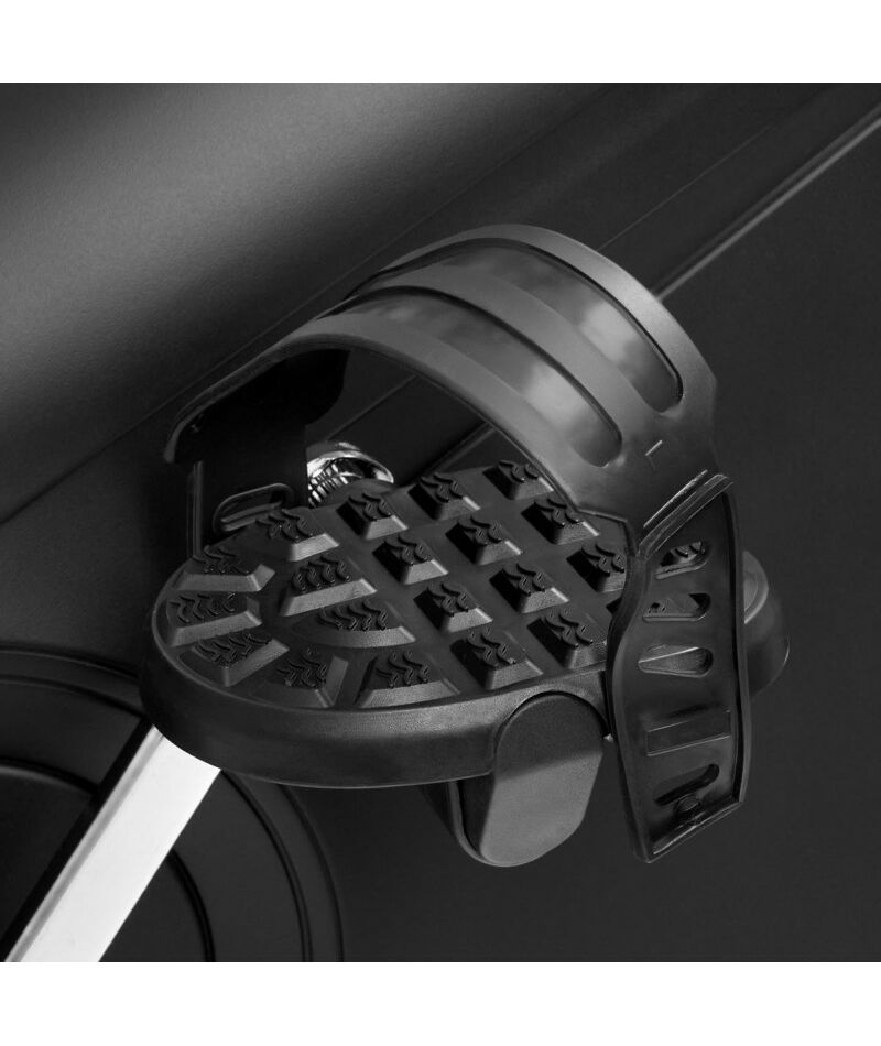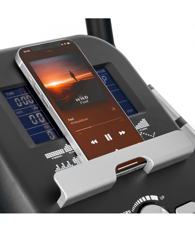 Для тренировок с контролем пульса существуют 4 пульсозависимые программы с предустановленными значениями 55%, 75%, 90% и 100% от целевого максимального пульса. Остальные опции также вносят свой вклад в общую эффективность и комфорт. Сидение можно отрегулировать по вертикали и горизонтали (вылет). Руль регулируется на 360 градусов, поэтому с подбором положения под себя точно не возникнет проблем. Сидение большое и удобное, а за счет двух больших гелиевых подушек еще и мягкое. Педали с регулируемыми ремнями настраиваются практически под любой размер стопы. Тренажер просто в перемещении за счёт транспортировочных роликов, а компенсаторы неровностей пола позволяют установить его на неровной поверхности. На подставку под телефон можно поставить свой мобильный девайс и наслаждаться просмотром видеороликов или просто слушать музыку.
