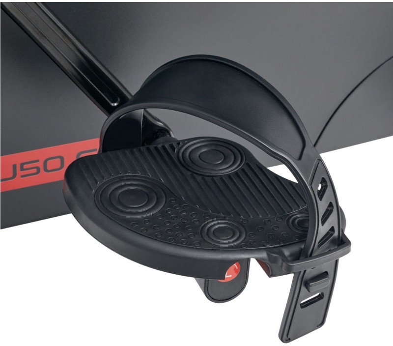Большая подушка сидения анатомической формы с гелиевыми вставками обеспечивает высокий уровень комфорта во время продолжительных тренировок. Педали с рифленой антискользящей поверхностью и регулируемые прорезиненные ремешки надежно фиксируют положение стопы любого размера. Консоль эллиптического тренажера представлена цветным LCD-дисплеем диагональю 14 см с сенсорными клавишами управления и профилем тренировочных программ.