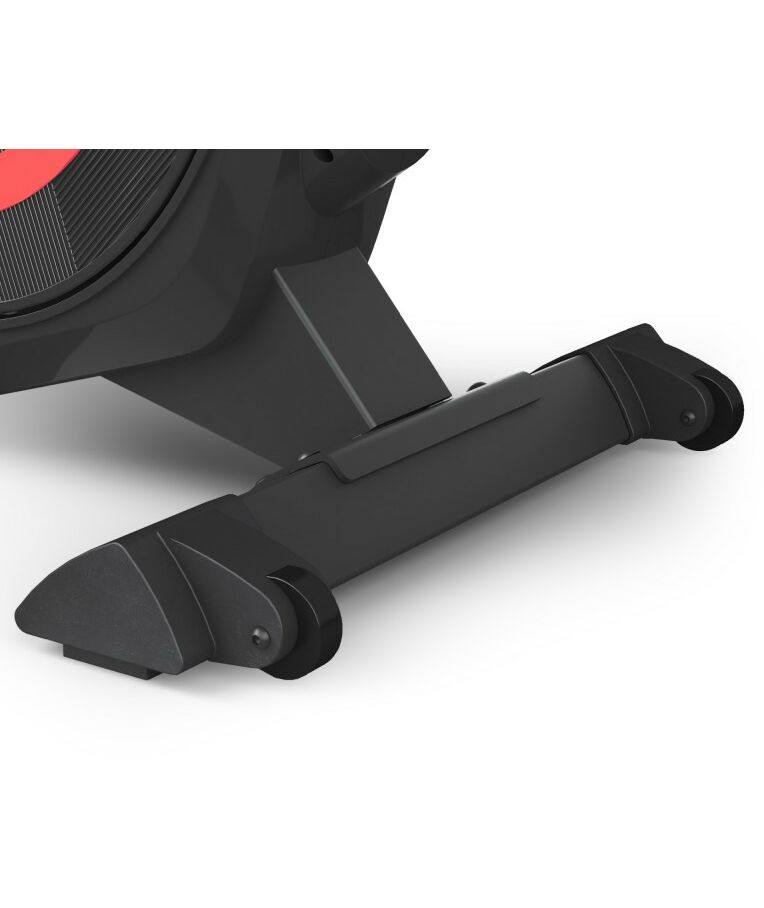 - Оснащение. Встроенные компенсаторы неровности пола гарантируют устойчивость во время интенсивного тренинга. Специальные транспортировочные ролики позволят без труда перемещать велотренажер по квартире и дому.