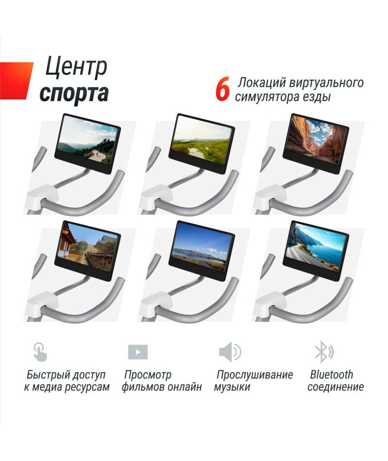 Важнейшей особенностью домашнего кардиотренажера является интеграция беспроводных технологий Wi-Fi, предоставляющая доступ к разнообразным интерактивным программам и мобильным приложениям. Вы сможете самостоятельно создавать индивидуальные планы тренировок либо воспользоваться одним из 17 предустановленных профилей. Дополнительно предусмотрено участие в сетевых соревнованиях, прослушивание музыки, просмотр медиаконтента через интегрированный монитор диагональю 15,6 дюймов, оснащённый качественной TFT-матрицей.