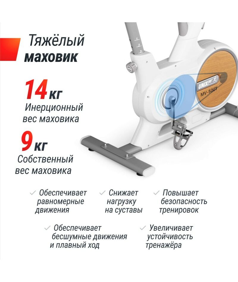Магнитный велотренажер с электроприводом для дома UNIX Fit MV-500T спин байк оснащён современными технологиями и ориентирован на широкий круг пользователей, стремящихся поддерживать физическую активность и улучшить своё самочувствие. Благодаря вставкам имитирующие натуральное дерево, он отличается изысканным дизайном и обеспечивает приятный тактильный контакт и легкость ухода. Велотренажер UNIX Fit MV-500T оснащён современными технологиями и ориентирован на широкий круг пользователей, стремящихся поддерживать физическую активность и улучшить своё самочувствие.