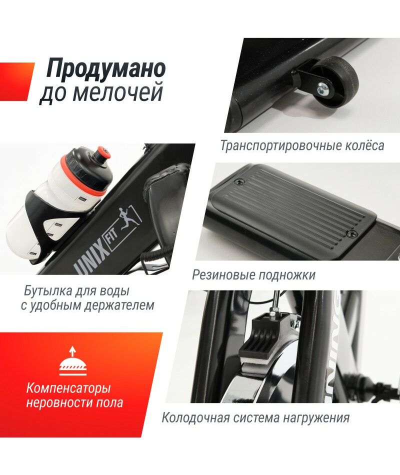 Велотренажер UNIX Fit SB-620 Pro поможет вам достичь своих фитнес-целей, комфортно и эффективно тренируясь прямо у себя дома! Отличие между тренировками на спин-байке и на велотренажере заключается в том, что первый предоставляет больше возможностей для попеременной нагрузки разных групп мышц. Кроме того, занятия на спин-байке максимально приближенно имитируют езду на реальном велосипеде.
