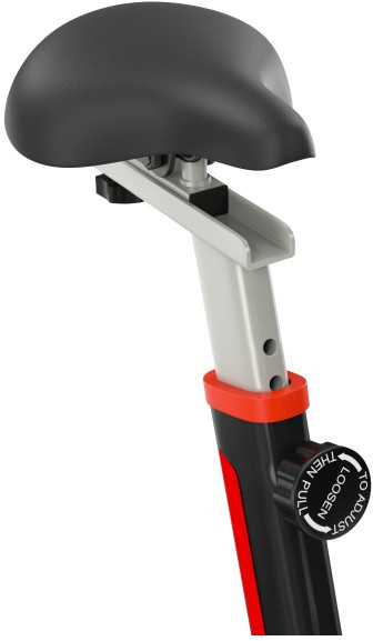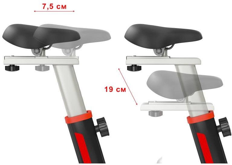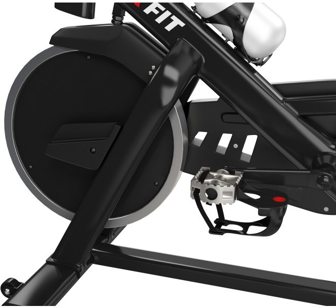 - Эргономичное гелевое сиденье и руль имеют возможность регулироваться под пользователя: сиденье по горизонтали и вертикали, а руль по вертикали. Антискользящее покрытие на педалях, а также наличие на них ремешков-фиксаторов способствуют удобному расположению ноги во время тренировки. У спин-байка имеются специальные транспортировочные ролики, так что его перемещение по квартире не вызовет затруднений.