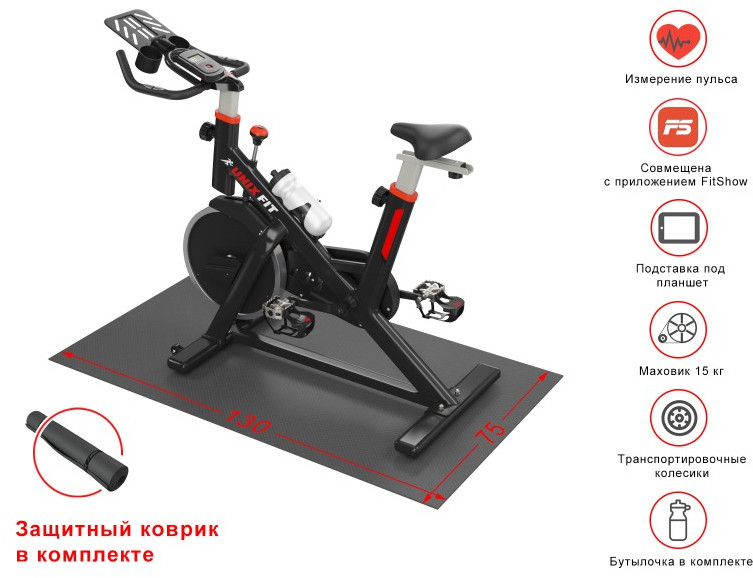 - *Защитный коврик идет в комплекте с тренажером. Для данной модели подходит коврик UNIXFIT 105x75 см.