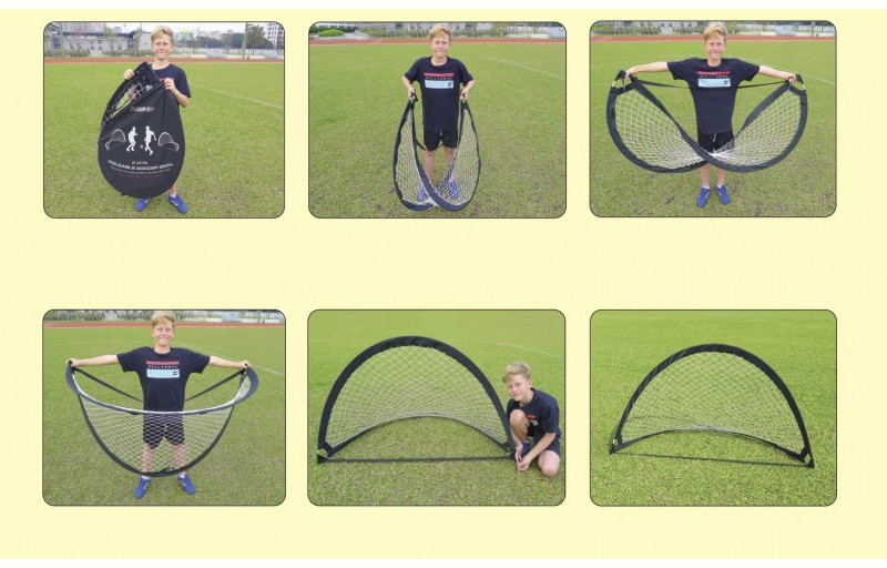 Детские футбольные ворота JC-6219A имеют складную конструкцию. Разбираются/собираются за считанные секунды. Просто расстегните фиксатор и ворота готовы к игре.
