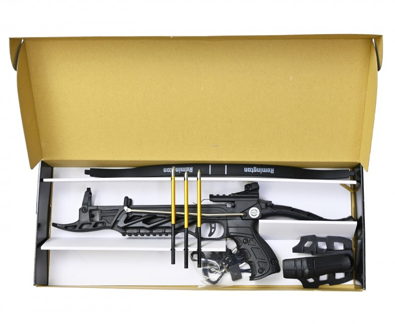 - Для этого арбалет пистолет Remington Mist Black дополнительно оборудован направляющей планкой типа Пикатинни 22 миллиметра. Процесс монтажа отличается простотой и легкостью.