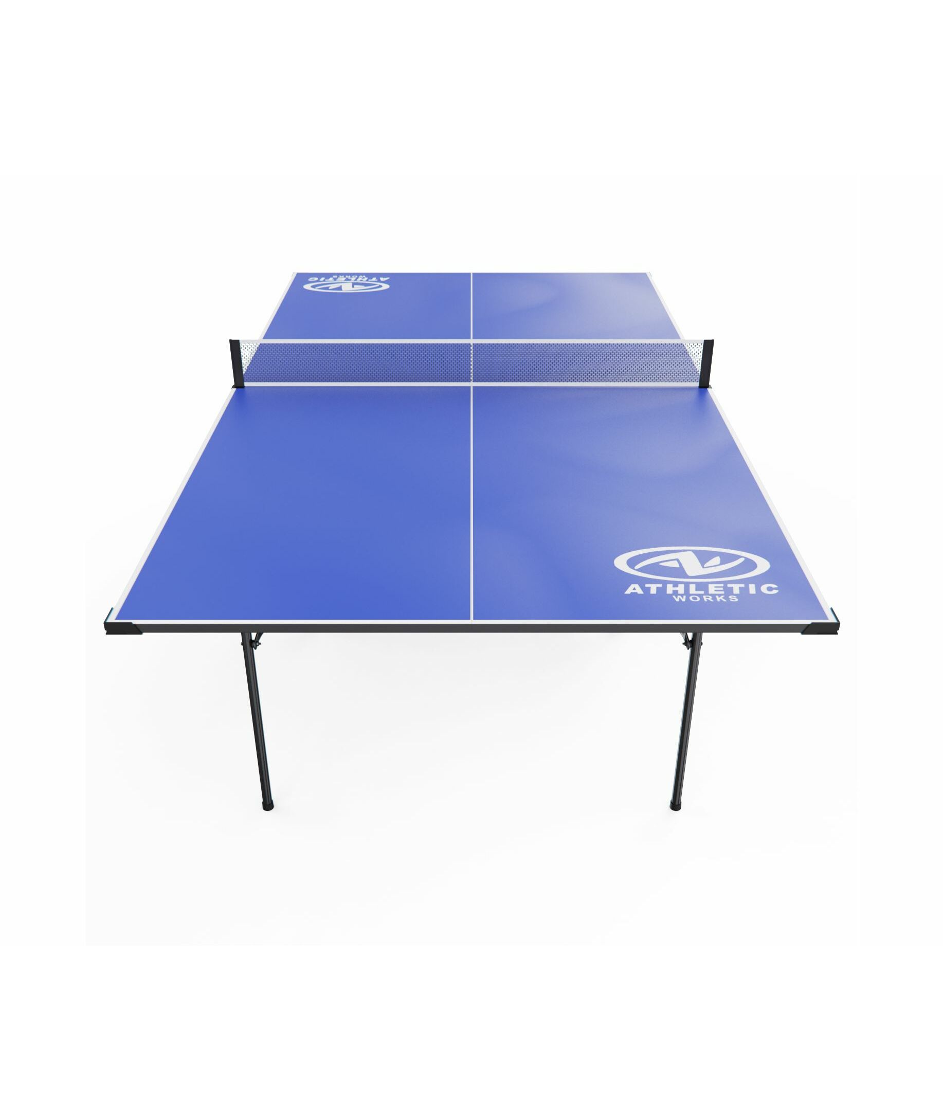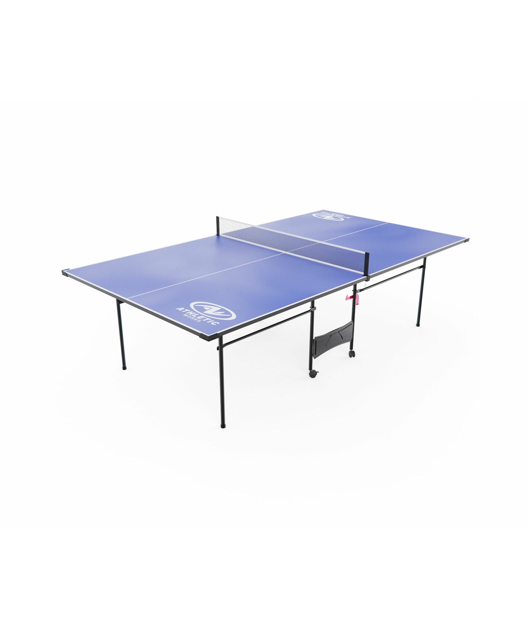 Размеры стола в разложенном виде составляют 274,3 х 152,4 х 76 см. Столешница выполнена из 15 мм ДСП, а покрытие обеспечивает оптимальный отскок мяча и долгий срок службы. Сетка в комплекте.