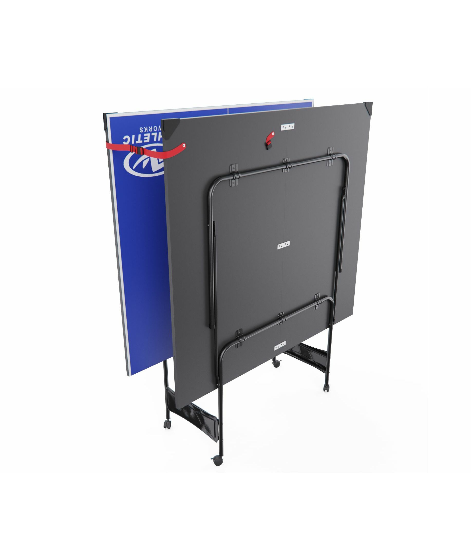 Модель складная, и в сложенном виде имеет компактные размеры 66 х 152 х 186,5 см, что делает её удобной для хранения даже в квартире. Встроенные транспортировочные ролики позволяют легко перемещать стол по комнате без лишних усилий.