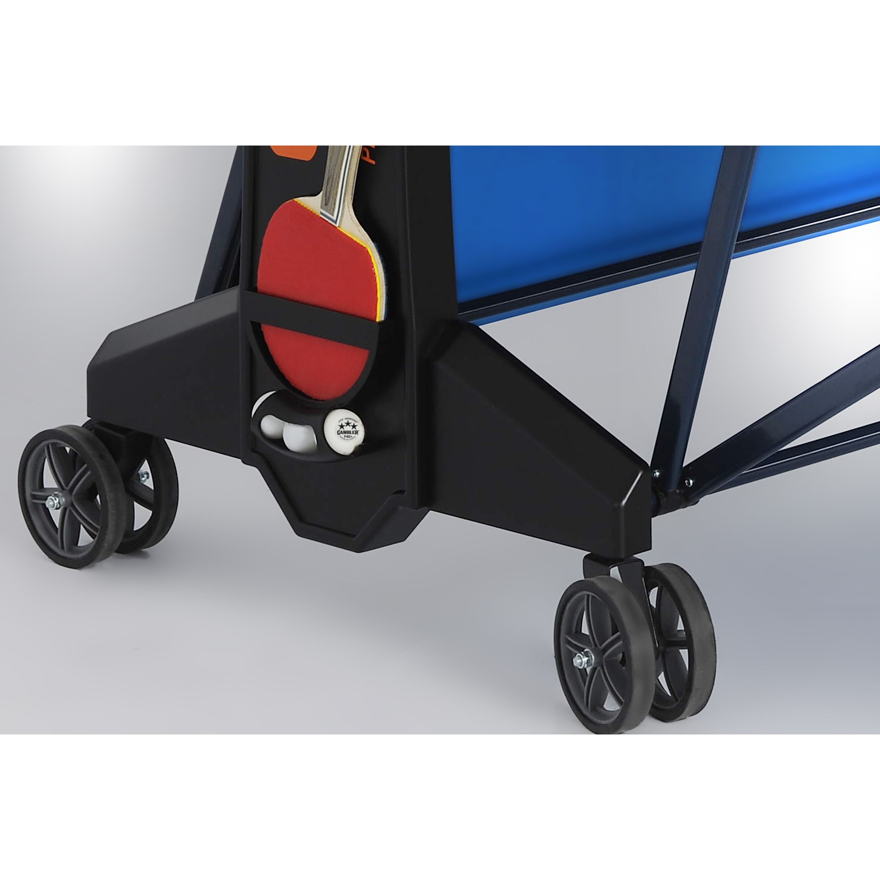 Надежный стол для организации игры в помещении. Подойдет для теннисных клубов, проведения взрослых и юниорских соревнований и просто для организации детского и семейного досуга. Конструкция оснащается уникальной системой складывания с элементами, фиксирующими теннисный стол в сложенном и разложенном виде. Высота боковых опор регулируется — для комфорта при использовании на любой поверхности, даже неровной. Прорезиненные колеса гарантируют бережное маневрирование.