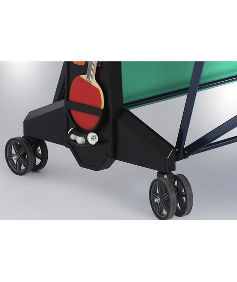 Надежный стол для организации игры в помещении. Подойдет для теннисных клубов, проведения взрослых и юниорских соревнований и просто для организации детского и семейного досуга. Конструкция оснащается уникальной системой складывания с элементами, фиксирующими теннисный стол в сложенном и разложенном виде. Высота боковых опор регулируется — для комфорта при использовании на любой поверхности, даже неровной. Прорезиненные колеса гарантируют бережное маневрирование.