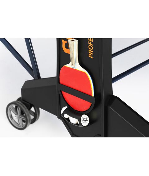 Высококачественный теннисный стол мирового бренда предназначен для использования в помещении. Легкая и удобная система складывания делает эту модель компактной и маневренной. Прорезиненные колеса гарантируют комфортное перемещение стола. Специальные конструкторские элементы позволяют фиксировать теннисный стол как в сложенном, так и разложенном виде. Подходит в качестве тренировочного стола для учебных заведений и клубов. Стол оснащен удобными боковыми накладками для хранения ракеток и мячей.