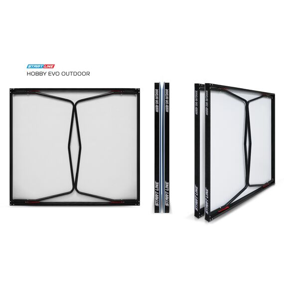Важным преимуществом стола Hobby Evo Outdoor является то, что он легко устанавливается и очень компактен при хранении.