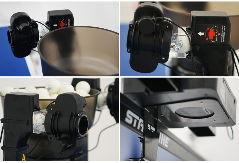 - Тренажер имеет 9 вариантов подачи для каждой из двух головок (вперед; назад; без вращения; левое боковое вращение; правое боковое вращение и их комбинации).