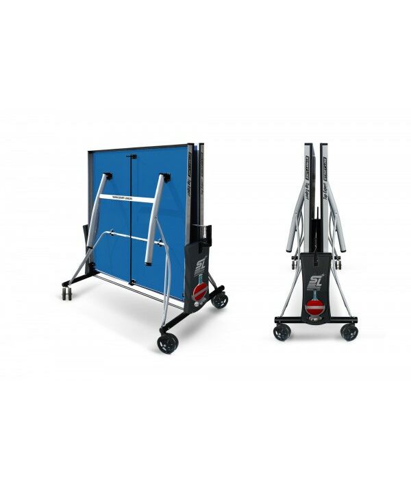 - Рама: стальная с полимерным покрытием. Новая, усовершенствованная система складывания с двойным механизмом фиксации игрового поля. Боковые опоры регулируются по высоте.