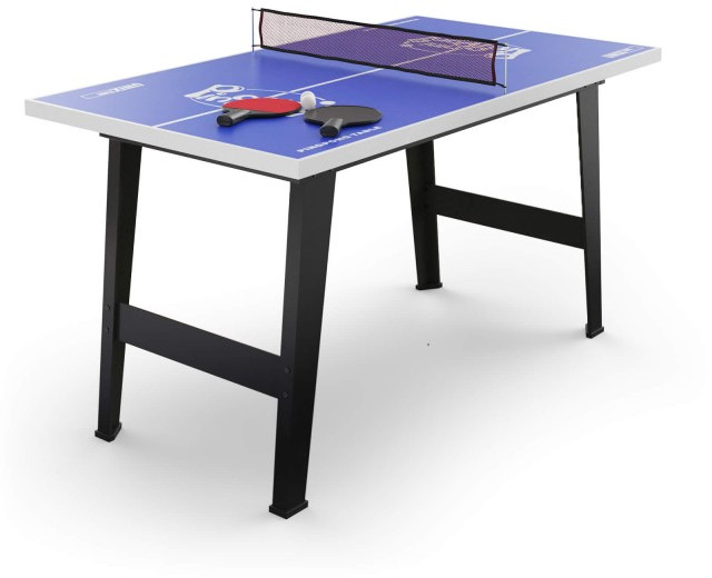 Теннисный стол также оснащен набором для игры - съемной сеткой, двумя ракетками и мячиком 40 мм, что делает его идеальным выбором для развлечения как для детей, так и для взрослых. Ракетки размером 17 х 10,5 х 1 см изготовлены из прочного и безопасного ABS-пластика и EVA. Вес стола 15 кг.