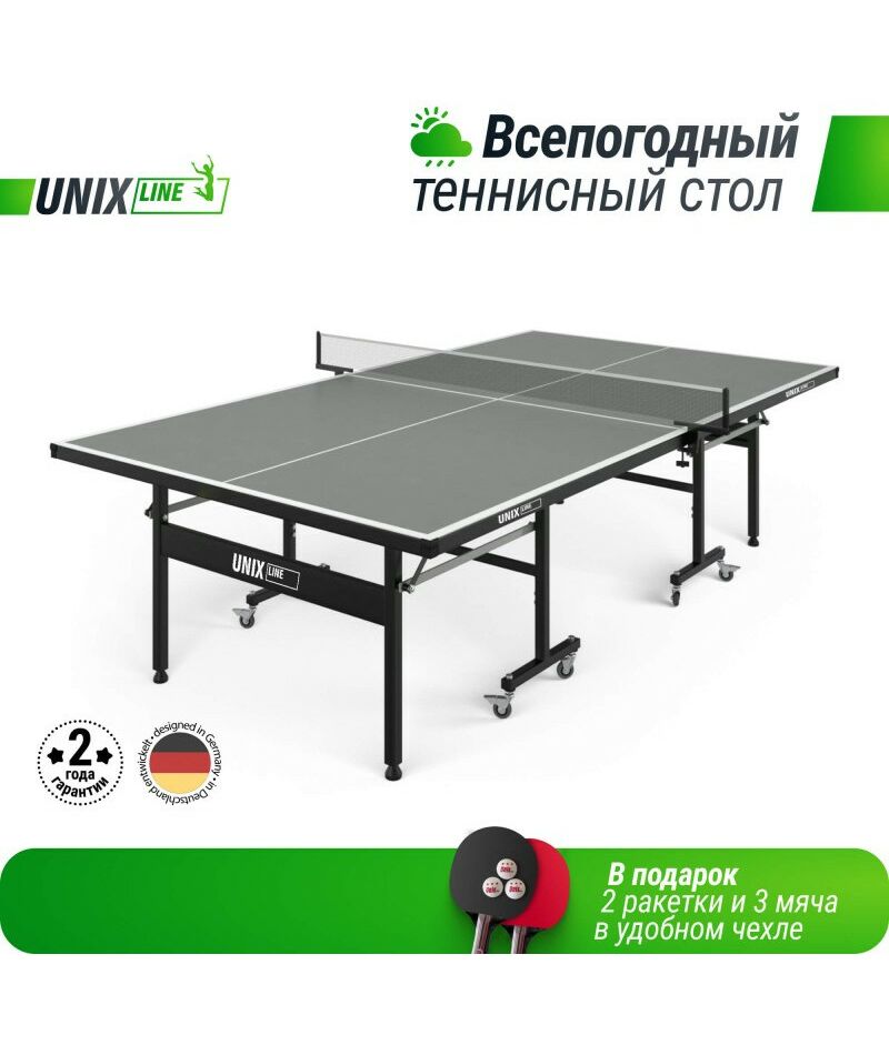 Всепогодные полупрофессиональные настольные теннисные столы UNIX Line предназначены для использования на открытых площадках. Каждый стол состоит из двух независимых половин с технологией складывания Compact.