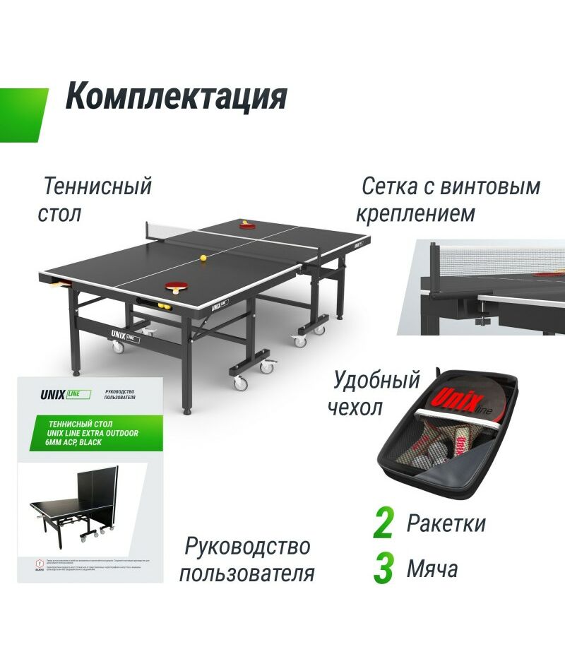 Описание UNIX line Всепогодный теннисный стол Extra Outdoor 6 mm ACP (Black)