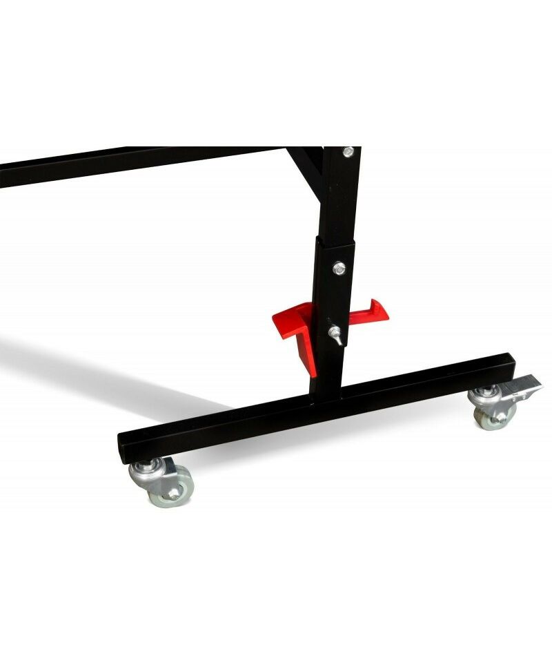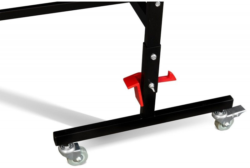 На подставке стола есть восемь обрезиненных маневровых колес диаметром 50 мм. Колеса двигаются в любом направлении, и позволяют перемещать стол в сложенном или разложенном виде. Фиксаторы на четырёх колёсах не позволят сдвинуться столу во время игры или во время хранения.