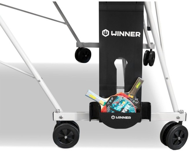 У стола "Winner S-600 Outdoor" есть удобная система для хранения инвентаря - восьми шариков и двух ракеток.