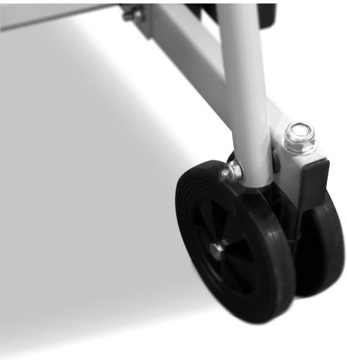 На подставке стола есть четыре двойных обрезиненных маневровых колеса диаметром 125 мм. Колеса двигаются в любом направлении, и позволяют перемещать стол в сложенном или разложенном виде.