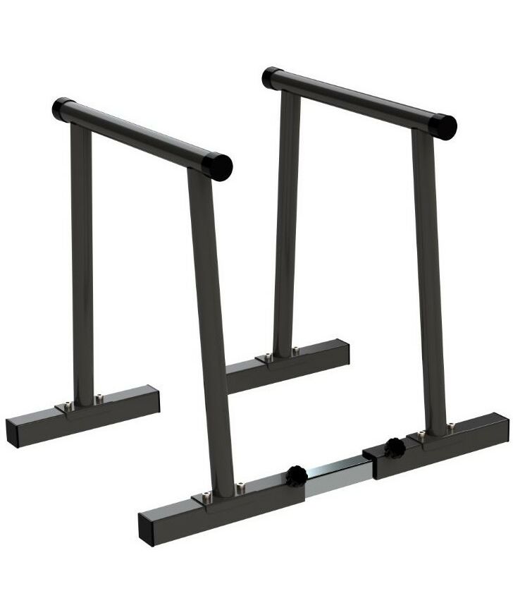 - Брусья для отжиманий «Паралетсы» - универсальный снаряд, на котором можно выполнять огромное количество упражнений – отжимания, стойки на руках, горизонтальный угол и т. д. На них можно тренироваться и в спортивном зале, и в домашних условиях. Фиксация расстояния между перекладинами осуществляется зажимом перемычки универсальным креплением с барашком.