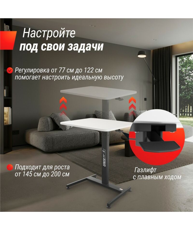 Регулируемый стол по высоте специально разработан для использования с беговыми дорожками. Он позволяет работать или учиться, не отвлекаясь от тренировки. С его помощью вы сможете заниматься любимыми делами — отвечать на электронные письма, проводить видеоконференции или читать документы — не выходя из зоны активности.