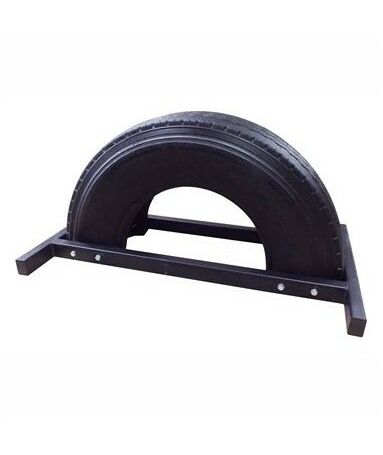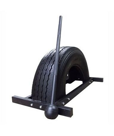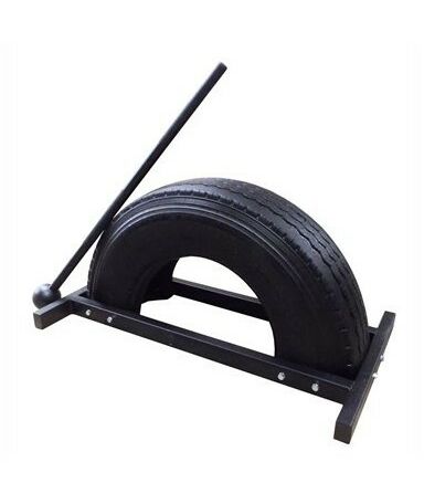 Тренажер Дровосек представляет собой автомобильную покрышку, разрезанную пополам и установленную на металлическую платформу. В комплект входит булава весом 5 кг.