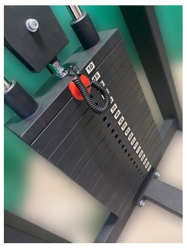 - Нагрузочная часть универсальна для грузоблочных тренажёров AVENIR и представлена девятнадцатью стальными плитами с втулками из ПВХ, направляющими, штоком и штыревым фиксатором, при помощи которого и варьируется нагрузка.