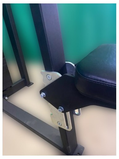 - В нижней части конструкции закреплены горизонтальное сиденье и вертикальная спинка, которая также выполняет роль опоры для груди при выполнении упражнения на задние дельты, когда спортсмен находится лицом к снаряду.