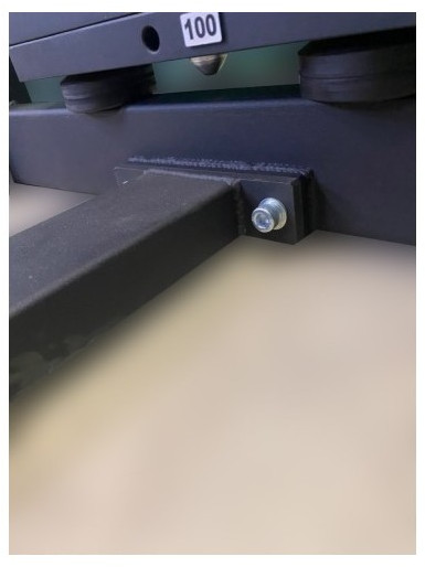 - Основание тренажёра имеет стальные 10 мм подпятники с отверстиями для крепления к полу.