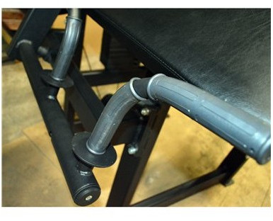 - Мягкие части тренажёра (спинка, упор и сиденье) выполнены из многослойной фанеры толщиной 10 мм и пенополиуретана повышенной прочности толщиной 40 мм, покрытых искусственной кожей плотностью 650 г/м2 и устойчивостью к истиранию более 100 000 циклов; мягкая часть крепится к основанию болтовыми соединениями.