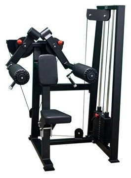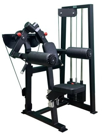 Спортсмен выставляет необходимую нагрузку на грузоблочной системе штыревым фиксатором, присаживается на сидение, принимает необходимый угол наклона опираясь на упор, после чего приступает к тренировке.
