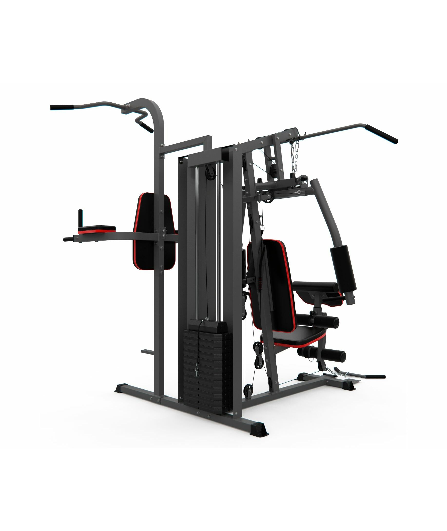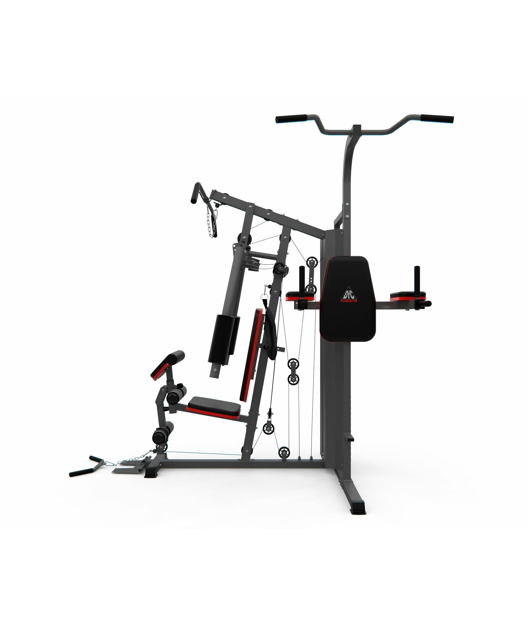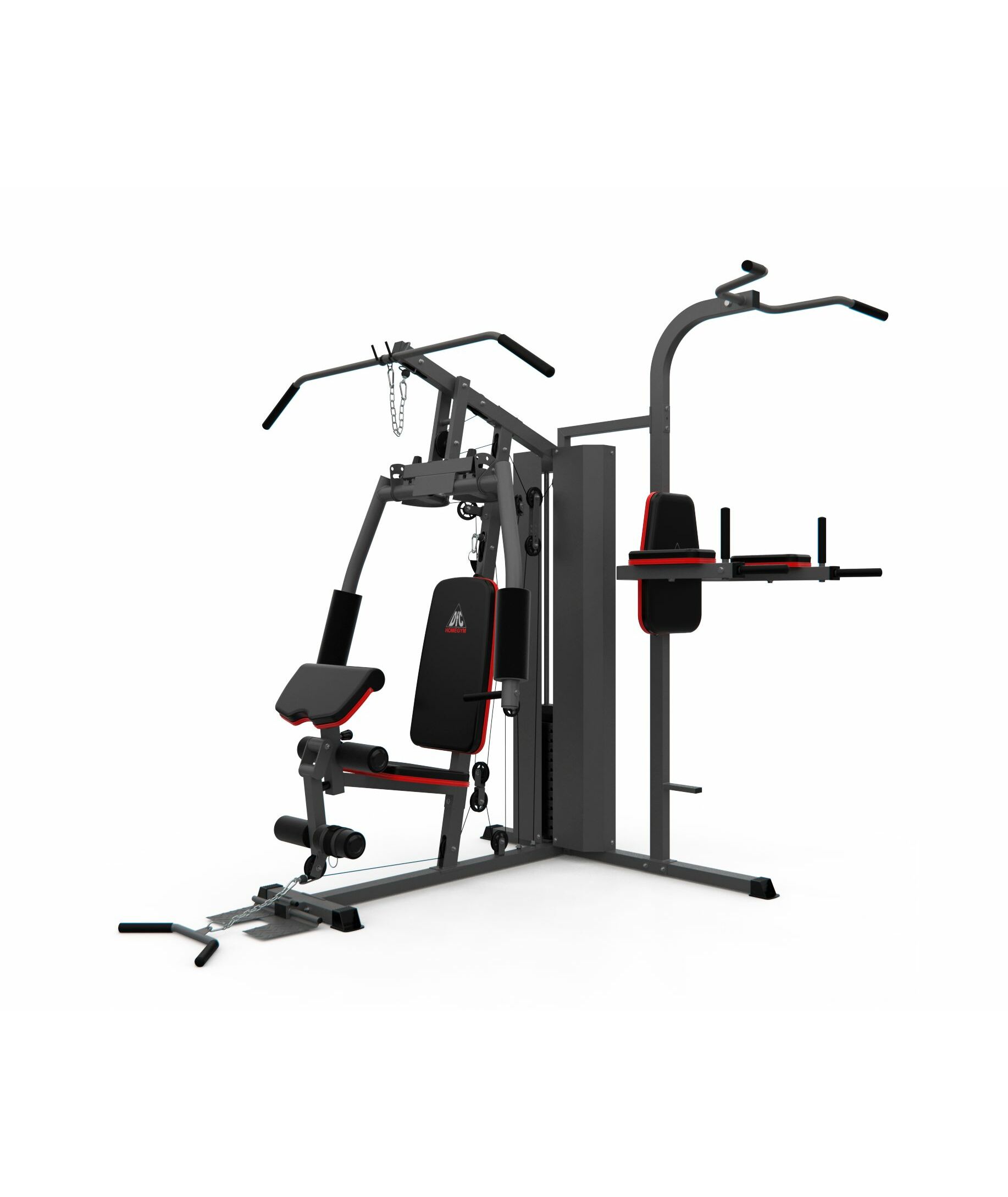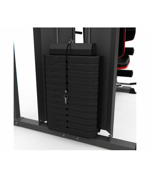 Многофункциональный силовой комплекс DFC D7004 оснащён множеством снарядов для упражнений на все группы мышц. Максимальный вес пользователя до 120 кг. Профиль основной трубы 70 х 50 х 1,5 мм. 11 весовых пластин в комплекте. Спинка регулируется по горизонтали на 3 уровня. Вес стека 72 кг, 1 блок – 6 кг.