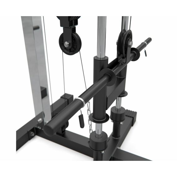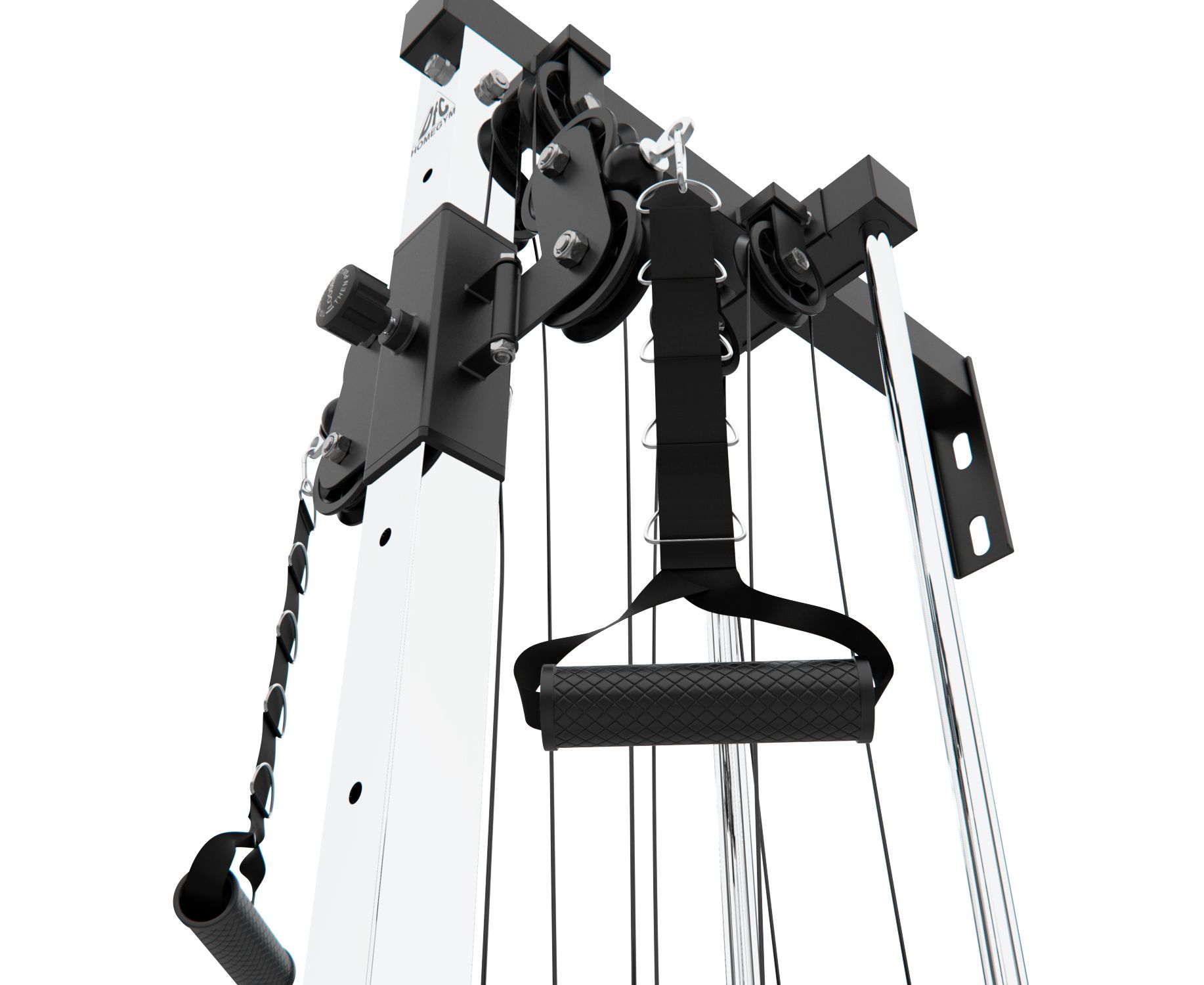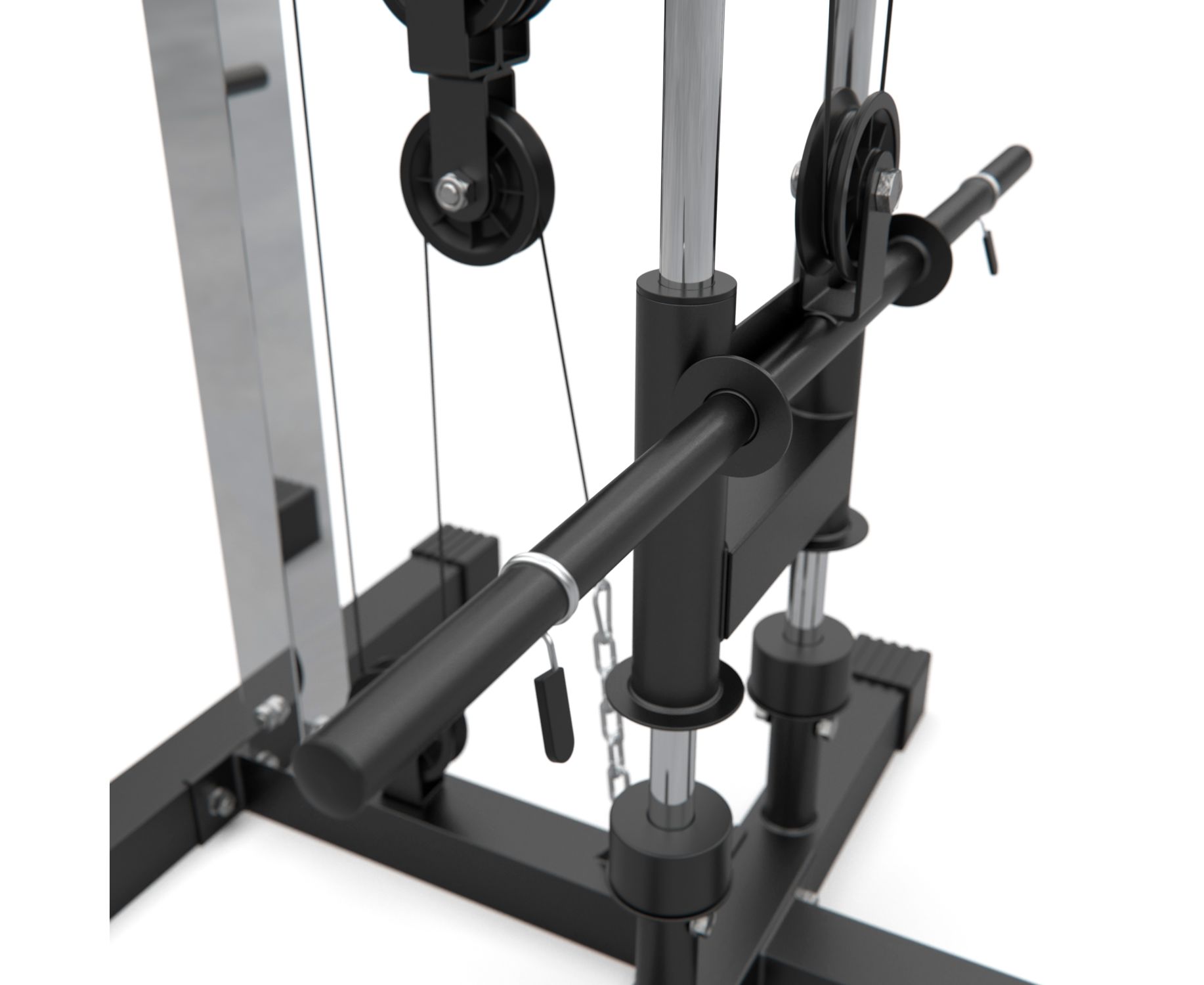 Кроссовер со свободными весами DFC D71104 - это отличное решение для занятий в домашних условиях. Максимальная нагрузка на конструкцию допустима до 150 кг, толщина троса составляет 6 мм. В комплекте рифлёные ручки для тяги с пятью крючками длиной 42 см для регулировки высоты хвата, их высота регулируется на 11 уровней.