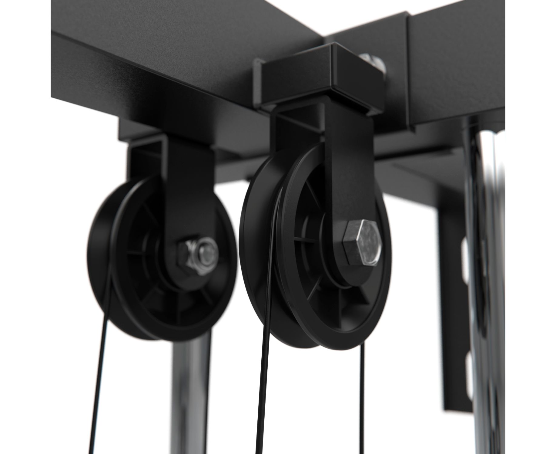 Держатели для дисков в кроссовере дадут вам возможность использовать дополнительные веса для увеличения нагрузки при выполнении упражнений. Кроме того, они организуют хранение дисков, что помогает сохранить порядок и экономит пространство в домашнем тренажерном зале. Они выдерживают нагрузку до 80 кг - по 40 кг с каждой стороны. Для большей устойчивости пользователь может прикрутить тренажёр к стене.